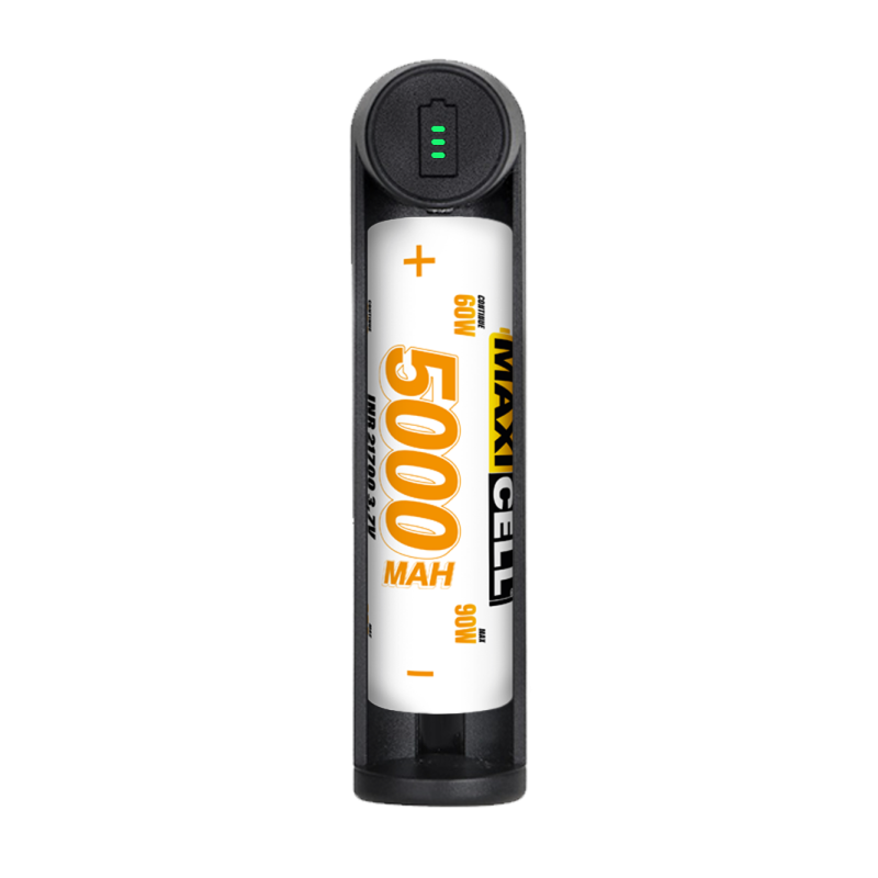 El cargador Maxicell MX1 es un cargador rápido y compacto para cargar de forma eficiente sus baterías de iones de litio.