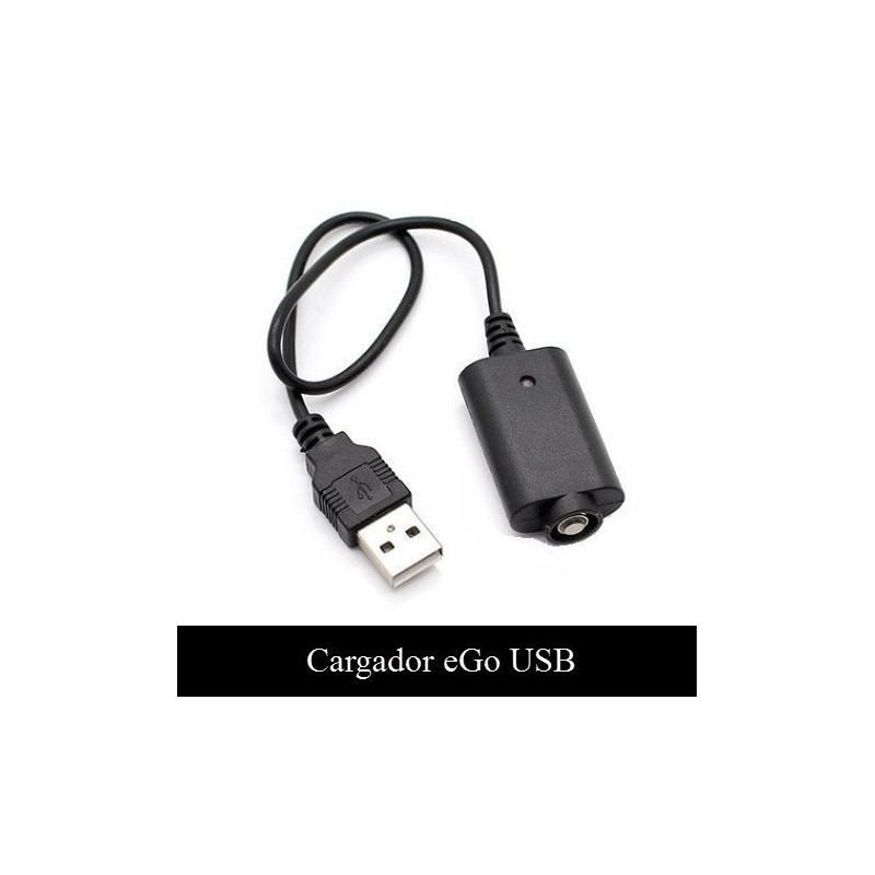 Cargador universal para baterías de cigarros electrónicos. Conexión USB para realizar cargas con cualquier dispositivo electrónico que tenga puerto USB; o bien conectándolo a un adaptador de USB para enchufe de pared.