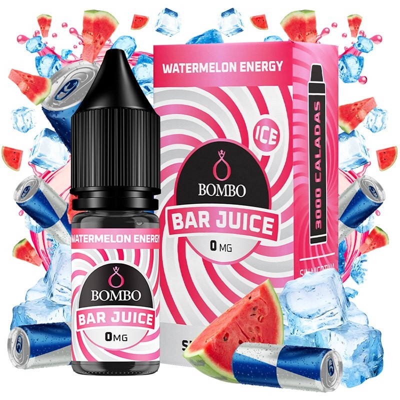 El líquido Watermelon Energy Ice de Bar Juice Nic Salts by Bombo conquista por su intenso sabor a sandía combinada con la bebida enegética por excelencia, y un toque de refrescante hielo.