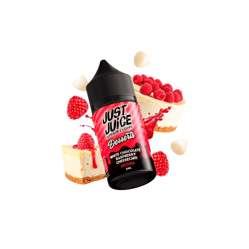 Just Juice Desserts White Chocolate Raspberry Cheesecake Aroma Longfill 6ml. Una combinación deliciosa de chocolate blanco sedoso, frambuesas ácidas y un fondo de tarta de queso aterciopelada. Un perfil complejo y equilibrado que une dulzor, frescor y cremosidad en cada inhalación.