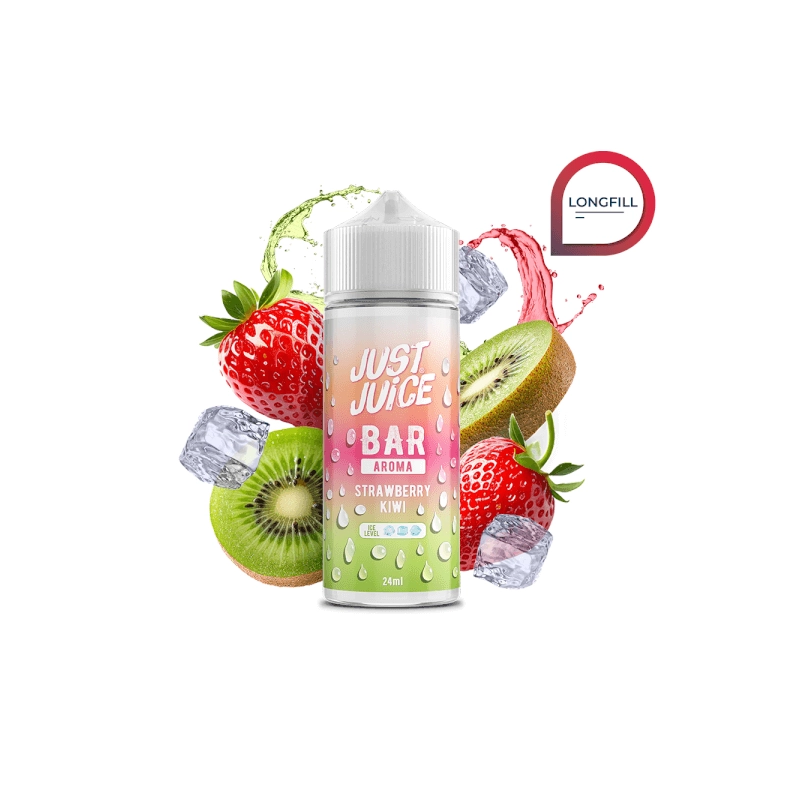 Just Juice Bar Strawberry Kiwi Longfill 24ml, es un aroma ultra concentrado que captura una combinación irresistible donde la jugosidad de las fresas más dulces se entrelaza con el toque ácido y exótico del kiwi, todo ello bañado con un toque de frescor que potencia cada nota.