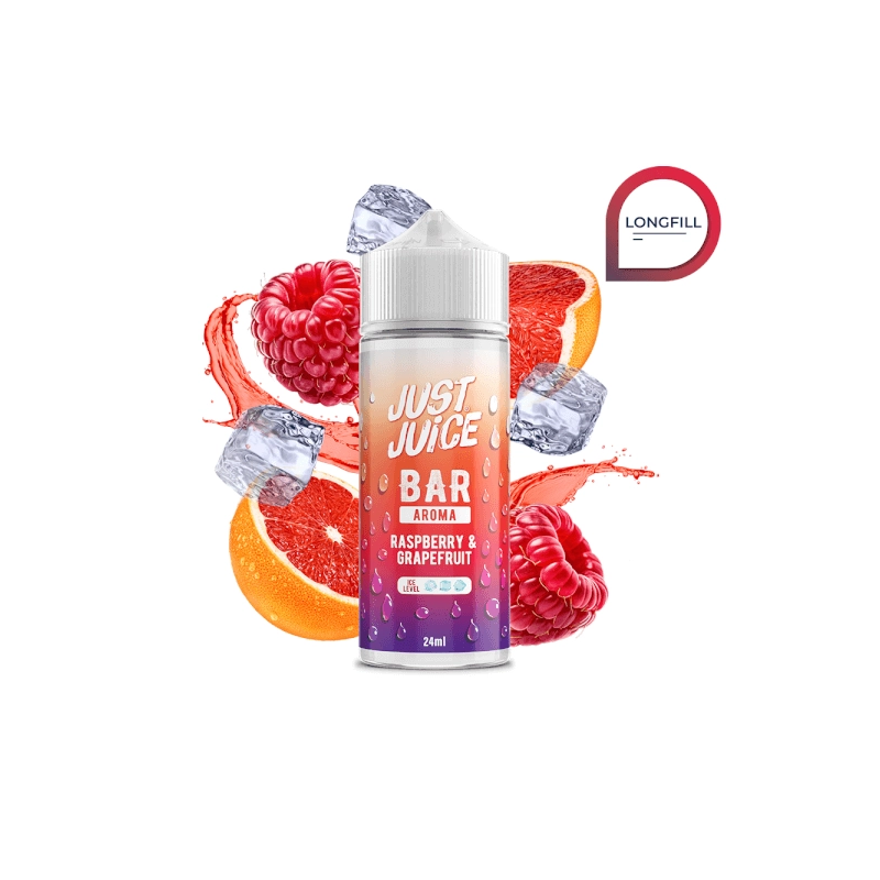 Just Juice Bar Raspberry Grapefruit Longfill 24ml, es un aroma ultra concentrado que combina el toque ácido del pomelo y el jugoso toque de las frambuesas, creando una sinfonía refrescante de sabores que deleitará tus sentidos, ideal para quienes buscan algo fuera de lo común.