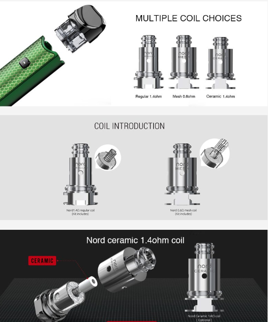 SMOK NORD MESH COIL 0.6 OHM. Especialmente diseñado para el Nord Kit y el Nord Pod. Esta bobina de malla está diseñada para vapeo por debajo de ohmios, tiene una malla grande en su interior, con la que puede obtener un proceso de calentamiento más rápido y nubes de vapor masivas. Consíguelo como pieza de recambio.
