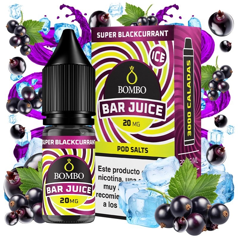 El líquido Super Blackcurrantde Bar Juice by Bombo es la intensidad máxima de grosella negra madura, dulce y ligeramente ácida, para un perfil potente y envolvente.
