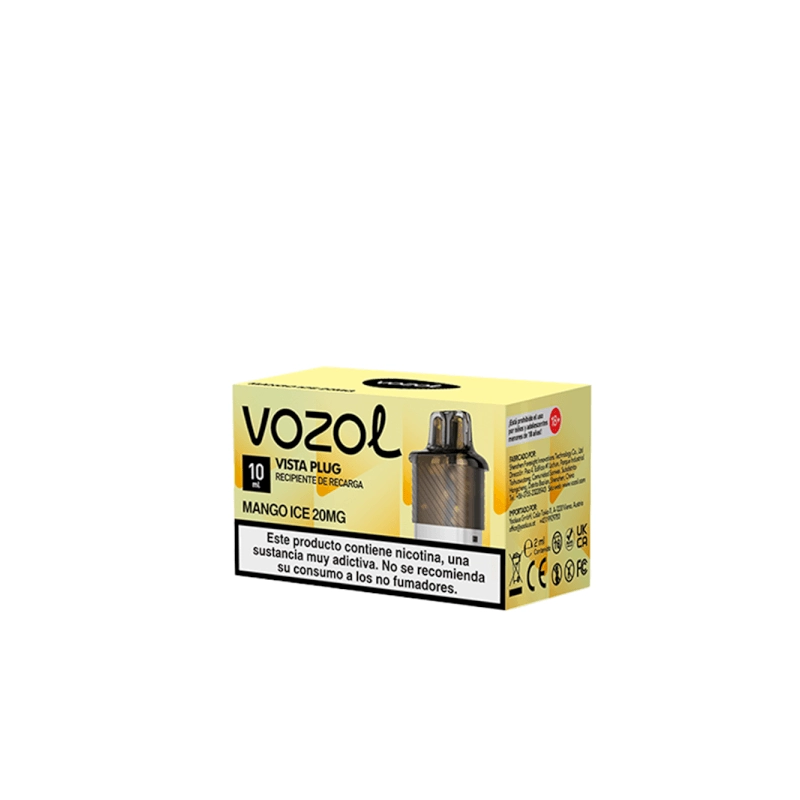 Vozol Vista Plug 2+10 Kit Mango Ice, una combinación vibrante de jugoso mango maduro con un toque de frescura del hielo que revitaliza tus sentidos.
